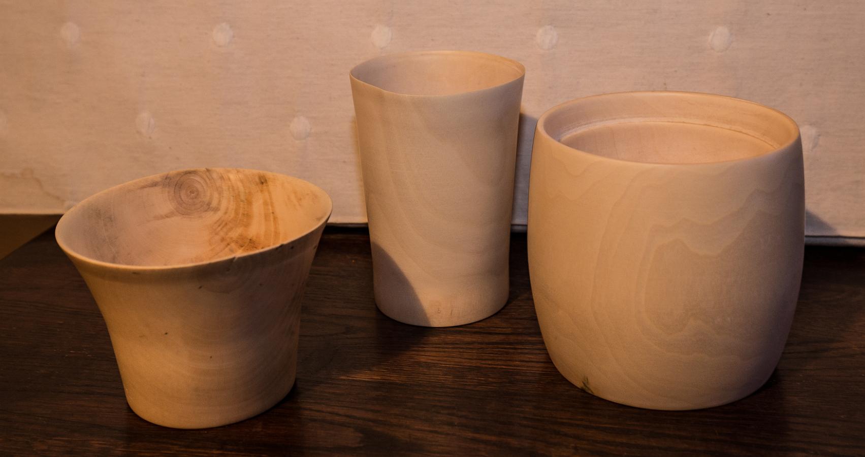 Bol, chope et cache pot en Erable sycomore